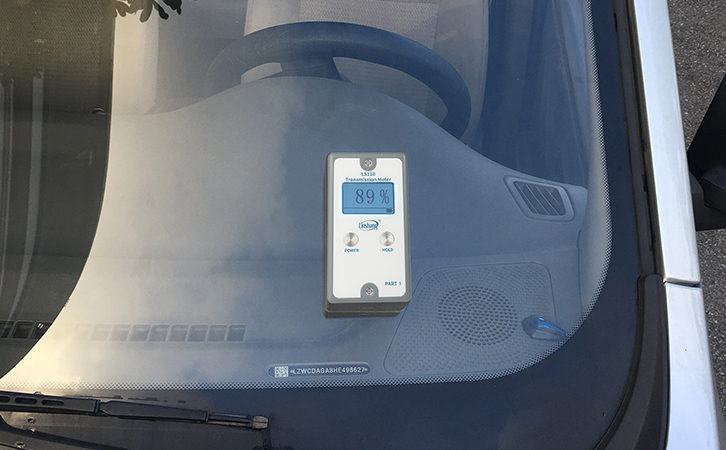 LS110分體式透光率儀是一款專業檢測汽車前擋玻璃的透光率測試儀器,儀器由主機(PARTⅠ)和副機(PART Ⅱ)組成,主機功能為測量及顯示,副機功能為測量光源及對準激光。LS110玻璃透光率測試儀由三個獨立測試單元都為可見光,顯示值為可見光透過率值(三路測量的平均值)。儀器的測試原理是采用可見光源照射被測透明物質,感應器分別探測光源的入射光強和透過被測透明物質后的光強,透過光強與入射光強的比值即為透光率,用百分數表示。