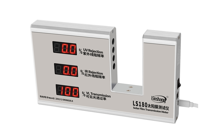 LS180太陽膜測試儀的測試原理是采用紫外光源,可見光源和紅外光源照射被測透明物質(zhì),感應(yīng)器分別探測三種光源的入射光強(qiáng)和透過被測透明物質(zhì)后的光強(qiáng),透過光強(qiáng)與入射光強(qiáng)的比值即為透過率,用百分?jǐn)?shù)表示。大多數(shù)的太陽膜,可見光標(biāo)注透過率指標(biāo),紅外線和紫外線標(biāo)注阻隔率指標(biāo),阻隔率=100%-透過率。