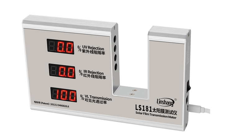 林上廠家供應LS181太陽膜測試儀,適用于汽車窗膜透光率檢測和紫外線紅外線阻隔率測試,平行光路設計,測試數據不受樣品放置位置影響,是一款高精度的汽車膜檢測儀。LS181太陽膜測試儀的測試原理是采用紫外光源,可見光源和紅外光源照射被測透明物質,感應器分別探測三種光源的入射光強和透過被測透明物質后的光強,透過光強與入射光強的比值即為透過率,用百分數表示。大多數的太陽膜,可見光標注透過率指標,紅外線和紫外線標注阻隔率指標,阻隔率=100%-透過率。LS181太陽膜測試儀直接測量和顯示紫外線的阻隔率,紅外線的阻隔率和可見光透過率,方便讀數和理解。