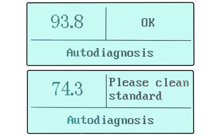 我們的石材光澤度計由主機和底座組成,底座包含標準板,開機的時候儀器都會進行自檢和校準標準板,如果校準的標準值合格,則會顯示OK,不合格則顯示請清潔標準板。這可以確保儀器標準值的精確度,測量的數據可信度更高,穩定性更強。