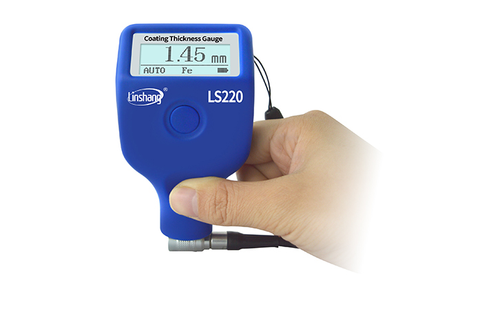林上膜厚儀的最小測(cè)量區(qū)域直徑是25mm,只要是大于這個(gè)區(qū)域的材料都可以測(cè)。下面就用膜厚儀LS220來測(cè)量一塊小工件上的涂層厚度。在測(cè)量時(shí)垂直按壓在小工件上,0.5秒就可以快速測(cè)量出厚度。