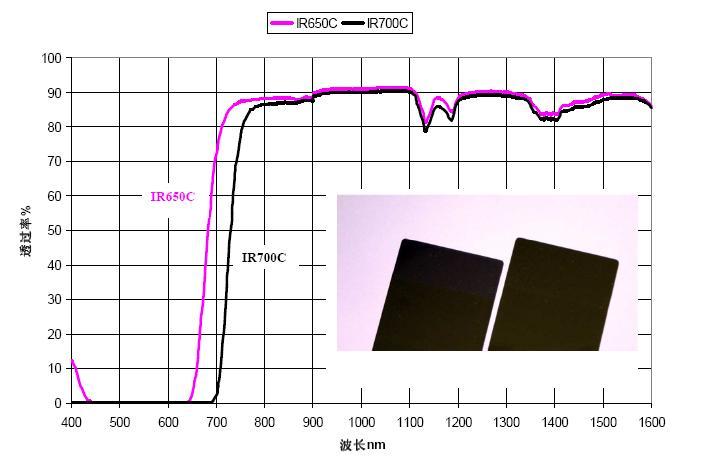 ??? 這種材料的特性在于在可見光范圍內給予黑色視覺,但能透過800-1600nm以上波長的近紅外區域,紅外透過率根據部件的厚度、工作波段和顏色要求,可以從80%至93%不等。